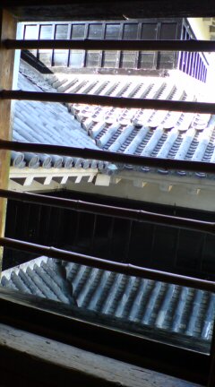 四階なんて、非常時には城主の御座所になるらしくて、御簾っぽいものが張り巡らされてあったのですが、何分明るさが足りなくて。偶然そこにいた人も撮っちゃったのですが、薄ぼんやりほやけて幽霊のようになってしまいました。っていうか御簾のそばに立つ幽霊ってなんだか怖い(><;)